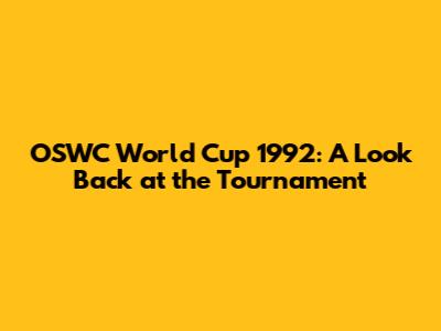 OSWC World Cup 1992: A Look Back At The Tournament