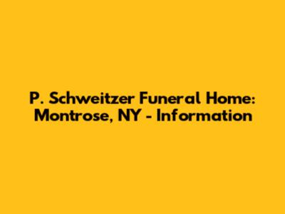 avigating the complexities of funeral arrangements can be a challenging and emotional experience. When you're seeking a reliable and compassionate funeral home in Montrose, NY, P. Schweitzer Funeral Home stands out as a pillar of support for the community. Let's dive deep into what makes this establishment a trusted choice for families during their times of need. Understanding the services offered, the approach to personalized care, and the overall reputation of the funeral home are crucial elements in making an informed decision. Whether you're pre-planning for yourself or arranging services for a loved one, this guide aims to provide comprehensive information about P. Schweitzer Funeral Home in Montrose, NY.