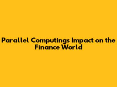 Parallel Computing's Impact On The Finance World