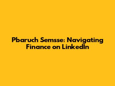 Hey guys! Let's dive into the world of Pbaruch Semsse and his presence on LinkedIn. This is all about exploring his expertise in finance, the value he brings to the platform, and how you can learn from his insights. We're going to break down his profile, the kind of content he shares, and how he's making a splash in the financial community. This is going to be super interesting, especially if you're looking to level up your understanding of finance or just want to see how the pros do it. LinkedIn is a goldmine for connecting with experts, and Pbaruch Semsse seems to be one of the shining stars. So, let's jump in and see what makes his profile so compelling and how he's using the platform to share his knowledge and build connections. We'll look at the strategies he employs, the kind of engagement he fosters, and how you can apply some of these tactics to your own LinkedIn journey. It's all about learning from the best and getting inspired, right? Get ready to take notes, because there's a lot of valuable stuff to unpack here. The goal is to provide a comprehensive look at how Pbaruch Semsse is leveraging LinkedIn to share his expertise and connect with others in the finance world. Let's see how he does it! Understanding how finance professionals use social media can provide insights into best practices for career advancement, networking, and staying current with industry trends. This analysis will not only explore Pbaruch Semsse's activities on LinkedIn but also highlight the broader significance of professional networking in the finance sector. Are you excited? I know I am!