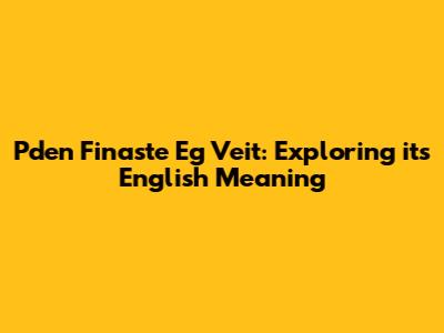 Pden Finaste Eg Veit: Exploring Its English Meaning