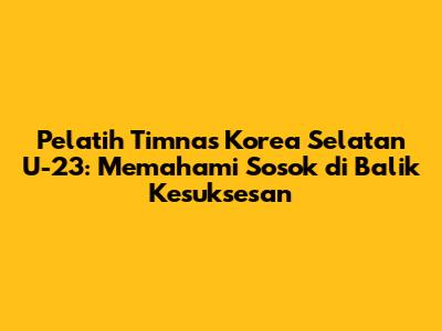 Pelatih Timnas Korea Selatan U-23: Profil, Strategi, Dan Peran Penting