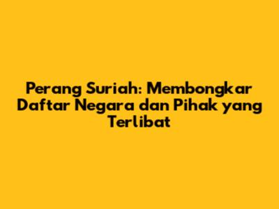 Perang di Suriah adalah konflik yang kompleks dan berdarah yang melibatkan banyak pihak dengan kepentingan yang berbeda. Memahami siapa yang melawan siapa sangat penting untuk memahami dinamika konflik yang sedang berlangsung. Keterlibatan negara-negara seperti AS, Rusia, Iran, dan Turki, serta kelompok-kelompok seperti pemerintah Suriah, pemberontak, dan ISIS, telah menciptakan situasi yang sangat rumit. Konflik ini telah menimbulkan dampak yang sangat besar bagi warga sipil, dengan ratusan ribu orang tewas dan jutaan orang mengungsi. Upaya untuk mencapai perdamaian masih menghadapi banyak tantangan, tetapi sangat penting untuk terus berupaya mencapai solusi damai dan memberikan bantuan kemanusiaan kepada warga Suriah.