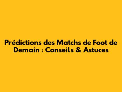 Prédictions Des Matchs De Foot De Demain: Conseils & Astuces