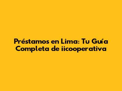 Préstamos En Lima: Guía Completa De Iicooperativa