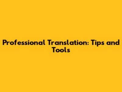 Professional Translation: Tips And Tools