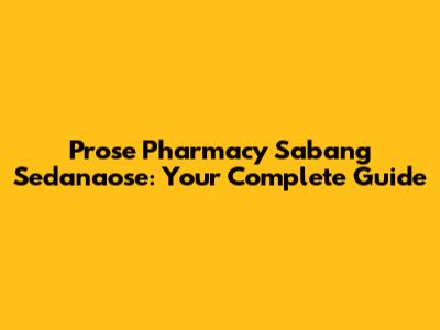 Prose Pharmacy Sabang Sedanaose: Your Complete Guide