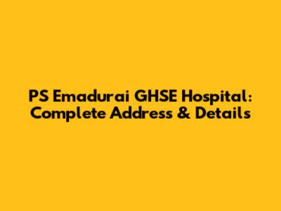 PS Emadurai GHSE Hospital: Complete Address & Details