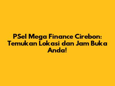 PSeI Mega Finance Cirebon: Lokasi Dan Jam Buka