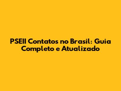 PSEII Contatos No Brasil: Guia Completo E Atualizado