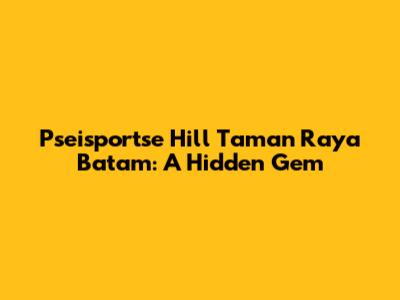 Hey guys, let's talk about a place that's been buzzing in Batam – Pseisportse Hill Taman Raya. If you're looking for a spot that offers a bit of everything, from stunning views to a chill vibe, you've gotta check this place out. It's not just another tourist trap; it's a local favorite that’s slowly gaining recognition, and for good reason! We're diving deep into what makes Pseisportse Hill so special, covering everything from how to get there, what to do, and why it should be on your Batam itinerary. So, buckle up, because we’re about to explore this awesome corner of Taman Raya.