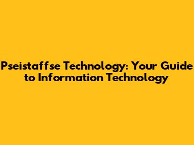 Pseistaffse Technology: Your Guide To Information Technology