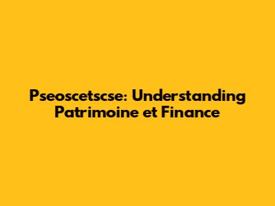 Pseoscetscse: Understanding Patrimoine Et Finance