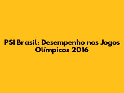 PSI Brasil: Desempenho Nos Jogos Olímpicos 2016