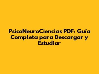 PsicoNeuroCiencias PDF: Guía Completa Para Descargar Y Estudiar