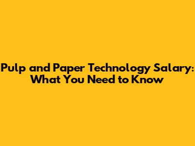 Pulp And Paper Technology Salary: What You Need To Know