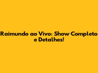 Raimundo Ao Vivo: Show Completo E Detalhes!