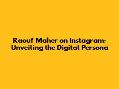 Raouf Maher On Instagram: Unveiling The Digital Persona