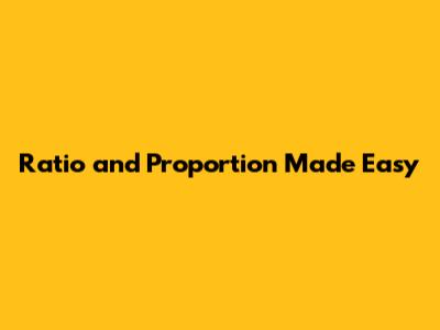 Ratio And Proportion Made Easy