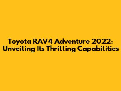 RAV4 Adventure 2022: Unveiling Its Thrilling Capabilities