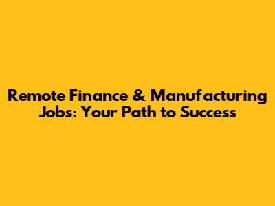 Remote Finance & Manufacturing Jobs: Your Path To Success