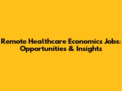 Remote Healthcare Economics Jobs: Opportunities & Insights