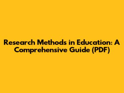 Research Methods In Education: A Comprehensive Guide (PDF)