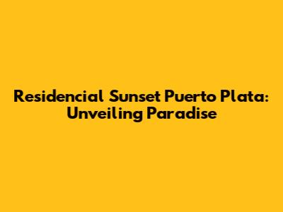 Hey there, future homeowner! Are you dreaming of a life filled with sunshine, stunning ocean views, and the laid-back Caribbean vibe? If so, you've probably stumbled upon Residencial Sunset Puerto Plata, and let me tell you, you're in for a treat! This exclusive residential development in the heart of the Dominican Republic offers a lifestyle that's the envy of many. In this article, we'll dive deep into everything you need to know about Residencial Sunset Puerto Plata. We'll explore its location, the types of properties available, the amenities, the investment potential, and why it might just be the perfect place for you to call home. Get ready to have your wanderlust sparked and your real estate dreams come to life!