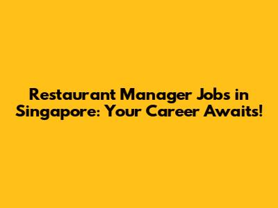 Restaurant Manager Jobs In Singapore: Your Career Awaits!
