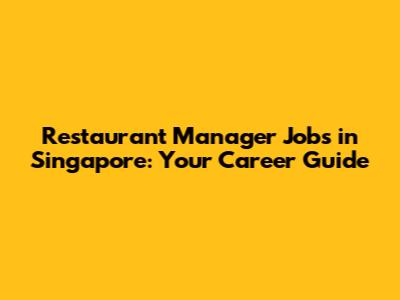 - JobStreet Singapore: One of the leading job portals in Singapore, with a wide range of listings for restaurant manager positions.