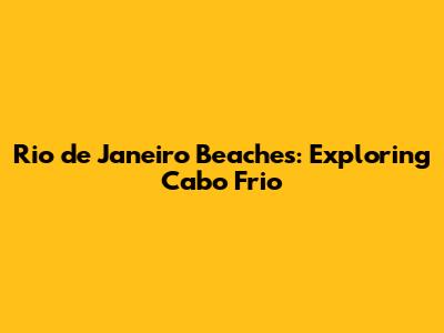 Rio De Janeiro Beaches: Exploring Cabo Frio