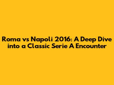 Roma Vs Napoli 2016: Epic Clash And Tactical Showdown