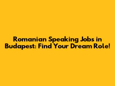 Romanian Speaking Jobs In Budapest: Find Your Dream Role!