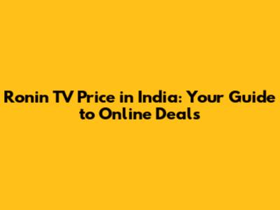 Ronin TV Price In India: Your Guide To Online Deals