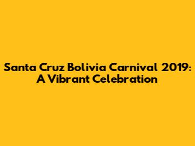 Santa Cruz Bolivia Carnival 2019: A Vibrant Celebration