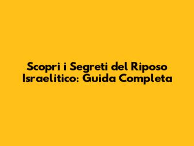 Scopri I Segreti Del Riposo Israelitico: Guida Completa