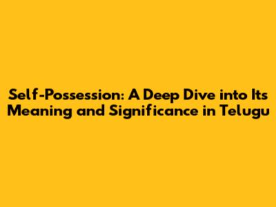 Self-Possession: Meaning & Significance In Telugu