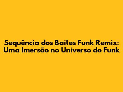 Sequência Dos Bailes Funk Remix: Explosão De Ritmos E Emoções