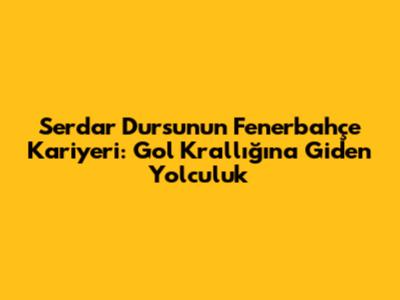 Serdar Dursun'un Fenerbahçe kariyeri, gollerle dolu, unutulmaz anılarla bezeli ve taraftarların gönlünde taht kurduğu bir dönem olarak tarihe geçmiştir. Onun Fenerbahçe formasıyla gösterdiği performans, attığı goller, derbi maçlardaki başarısı ve takım içindeki uyumu, onu Fenerbahçe camiası için önemli bir figür haline getirmiştir. Serdar Dursun'un Fenerbahçe'ye katkıları, sadece saha içinde değil, aynı zamanda saha dışında da hissedilmiş ve Fenerbahçe'nin tarihine altın harflerle yazılmıştır.
