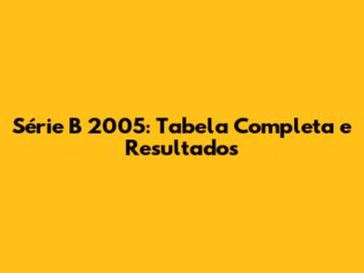 Série B 2005: Tabela Completa E Resultados