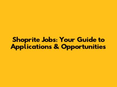Shoprite Jobs: Your Guide To Applications & Opportunities