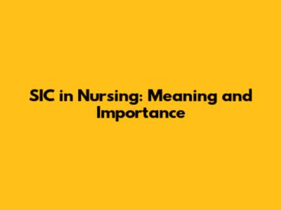 SIC In Nursing: Meaning And Importance