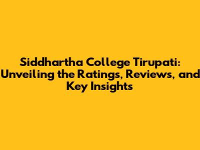 Siddhartha College Tirupati: Reviews, Rankings, And What You Need To Know