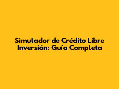 ¿Qué es un Simulador de Crédito Libre Inversión? (What is a Free Investment Credit Simulator?)