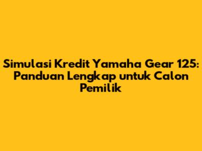 Simulasi kredit Yamaha Gear 125 adalah langkah penting sebelum kalian memutuskan untuk membeli motor ini secara kredit. Dengan melakukan simulasi, kalian bisa mengetahui besaran cicilan, total biaya, dan informasi penting lainnya yang berkaitan dengan kredit. Gunakan kalkulator simulasi kredit online atau konsultasikan dengan pihak dealer atau lembaga keuangan untuk mendapatkan hasil yang akurat. Jangan lupa untuk membandingkan penawaran dari berbagai lembaga keuangan dan memilih paket kredit yang paling sesuai dengan kebutuhan dan kemampuan finansial kalian. Dengan persiapan yang matang, kalian bisa memiliki Yamaha Gear 125 impian tanpa khawatir masalah keuangan.