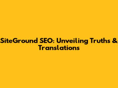 SiteGround SEO: Unveiling Truths & Translations