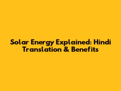 Solar Energy Explained: Hindi Translation & Benefits