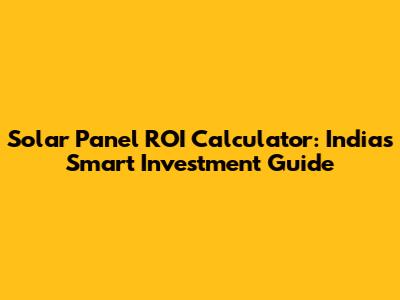 Solar Panel ROI Calculator: India's Smart Investment Guide