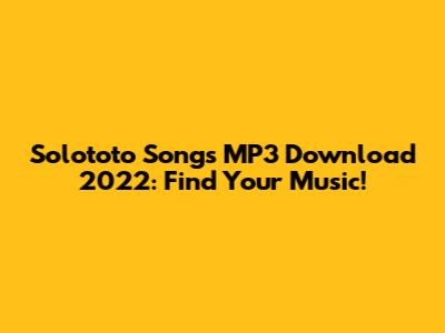 Solototo Songs MP3 Download 2022: Find Your Music!