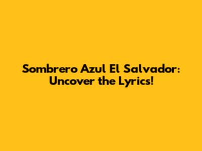 Sombrero Azul El Salvador: Uncover The Lyrics!